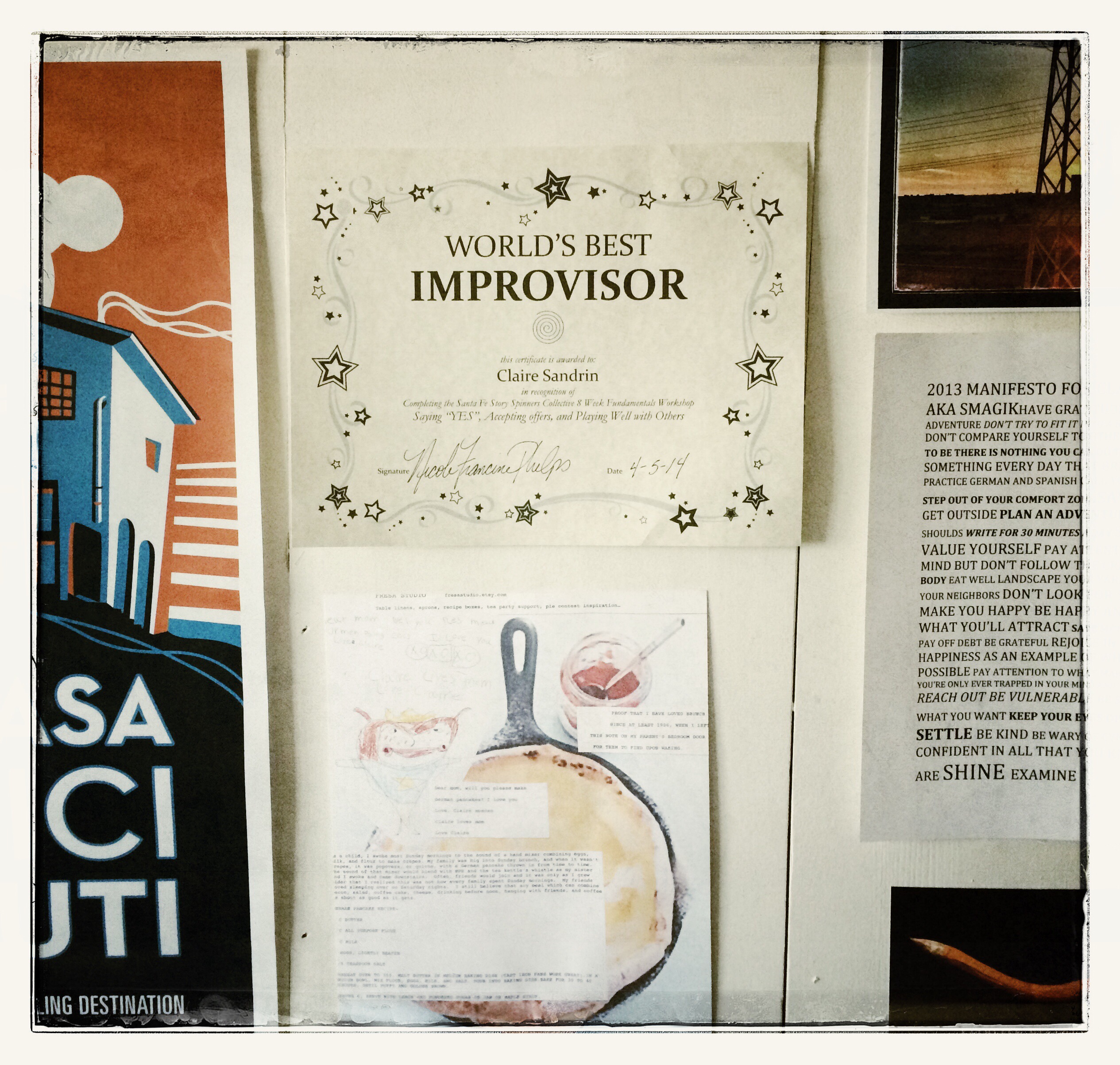 Eight weeks ago, I signed up for an improv class on a whim. It was something I hadn’t done since college and that I hoped would go well with my creative writing classes; getting me out of my head, keeping me present, helping me to have fun and take myself less seriously. It achieved all of those and yesterday, after the last class, we were all given “World’s Best Improvisor” awards.