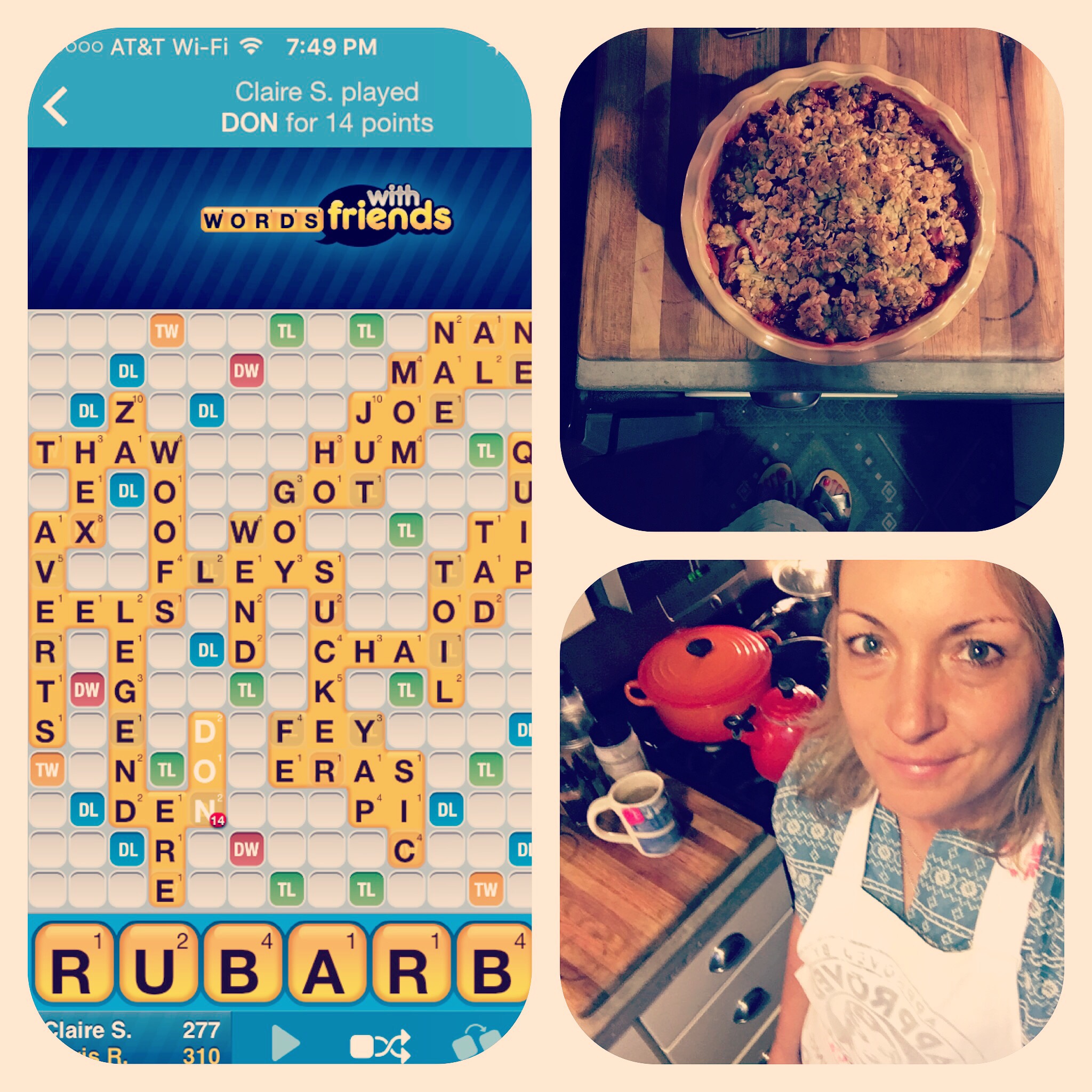 Sometimes it raining out, you’re just beginning to feel normal after two weeks of being ill, you are going to a potluck the next day, and while playing Words With Friends the word rhubarb, albeit missing an ‘h’, pops up and you decide to put on your apron and bake.