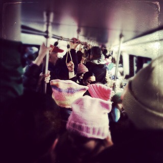 Thinking we had given ourselves plenty of time by starting for the Metro at 8:30, hoards of men, women, and children were already packed into full cars and stations. As we rose to ground level, a sea of pink hats stretched as far as we could see.