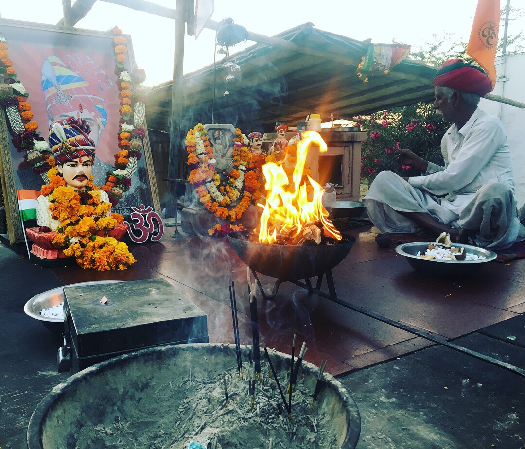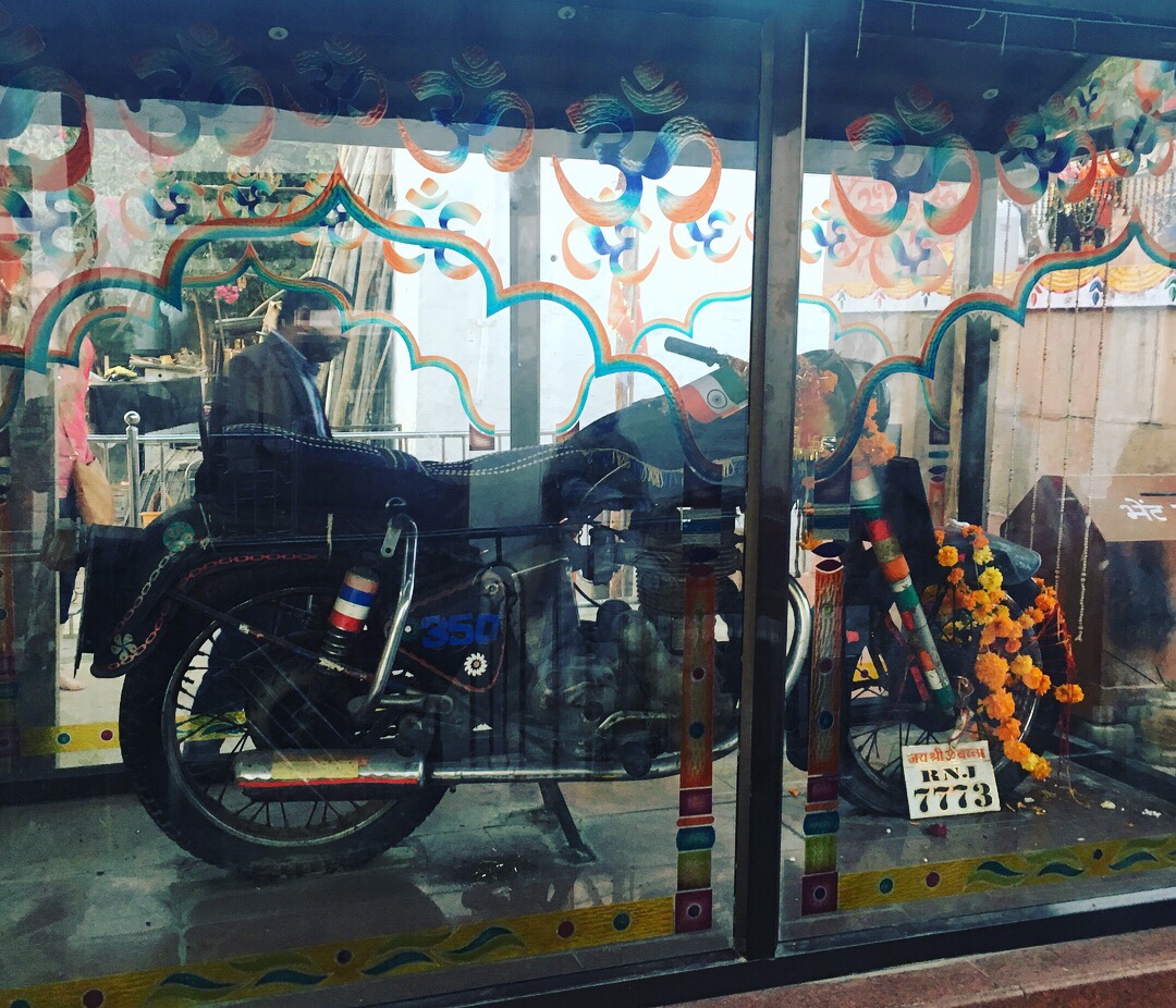 On the way from Udaipur to Jodhpur, we stop at the Om Banna motorbike Temple on the side of the highway. Om Banna was killed in a motorbike accident on the site in the 1980’s and, after his bike was cleared by police, it mysteriously made its way back to the site three times. Thus, a Temple.