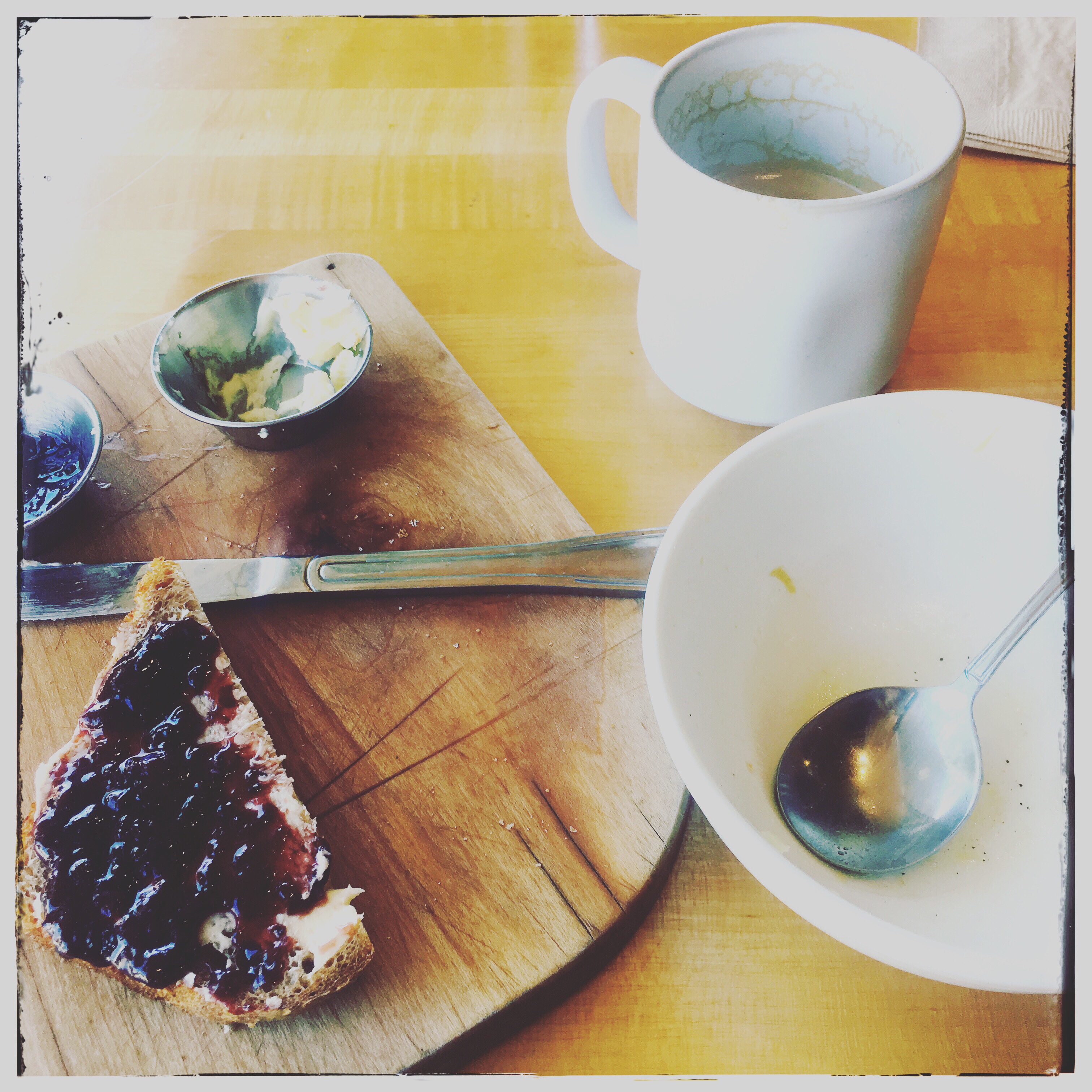 I’m sitting in Happy Girl Kitchen in Pacific Grove, California, because it’s as close as I can get to my kitchen at the moment. Three weeks into my four week stay and all I want is tea, toast, to write, and listen to music on Saturday mornings and, though some of that is possible from my room at the Hyatt, I prefer the long wooden tables decorated with mason jars of peonies, along with a dirty chai, at Happy Girl.
