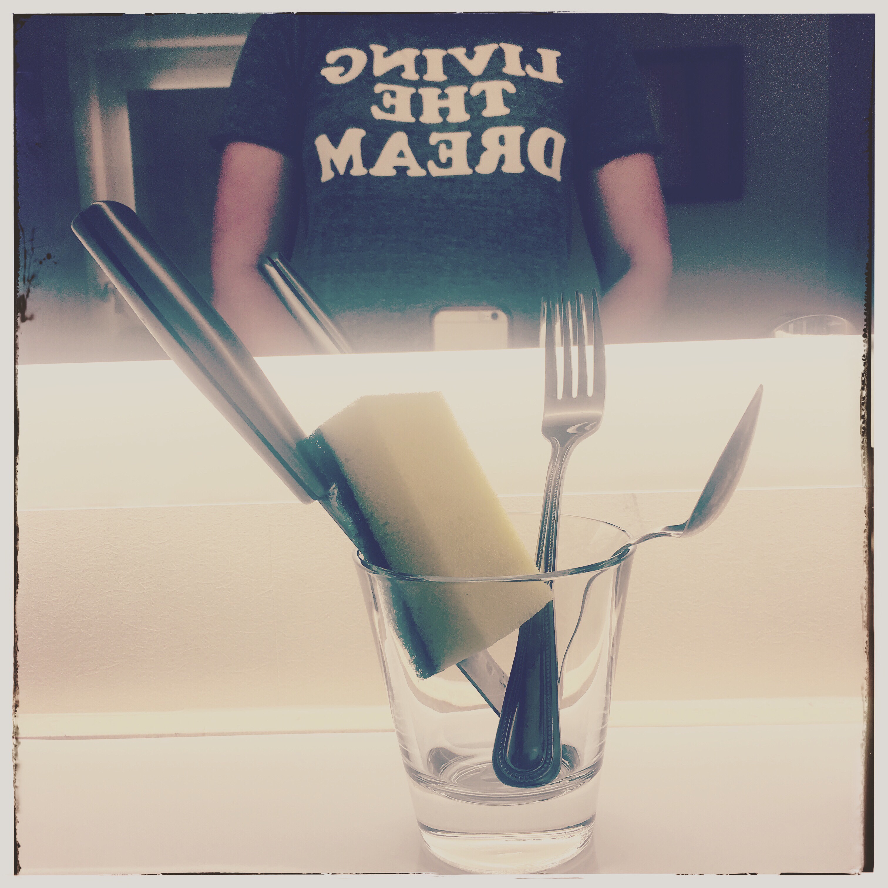 Later today I will go to the grocery store and stock up on my last week’s supply of daily salad ingredients and morning yogurt accessories, berries and such, to stuff in my mini fridge. There is a method to fitting one week’s food into such a small space and it has taken me fifteen years to figure it out. I also remembered the knife, fork, spoon, and sponge this time around.