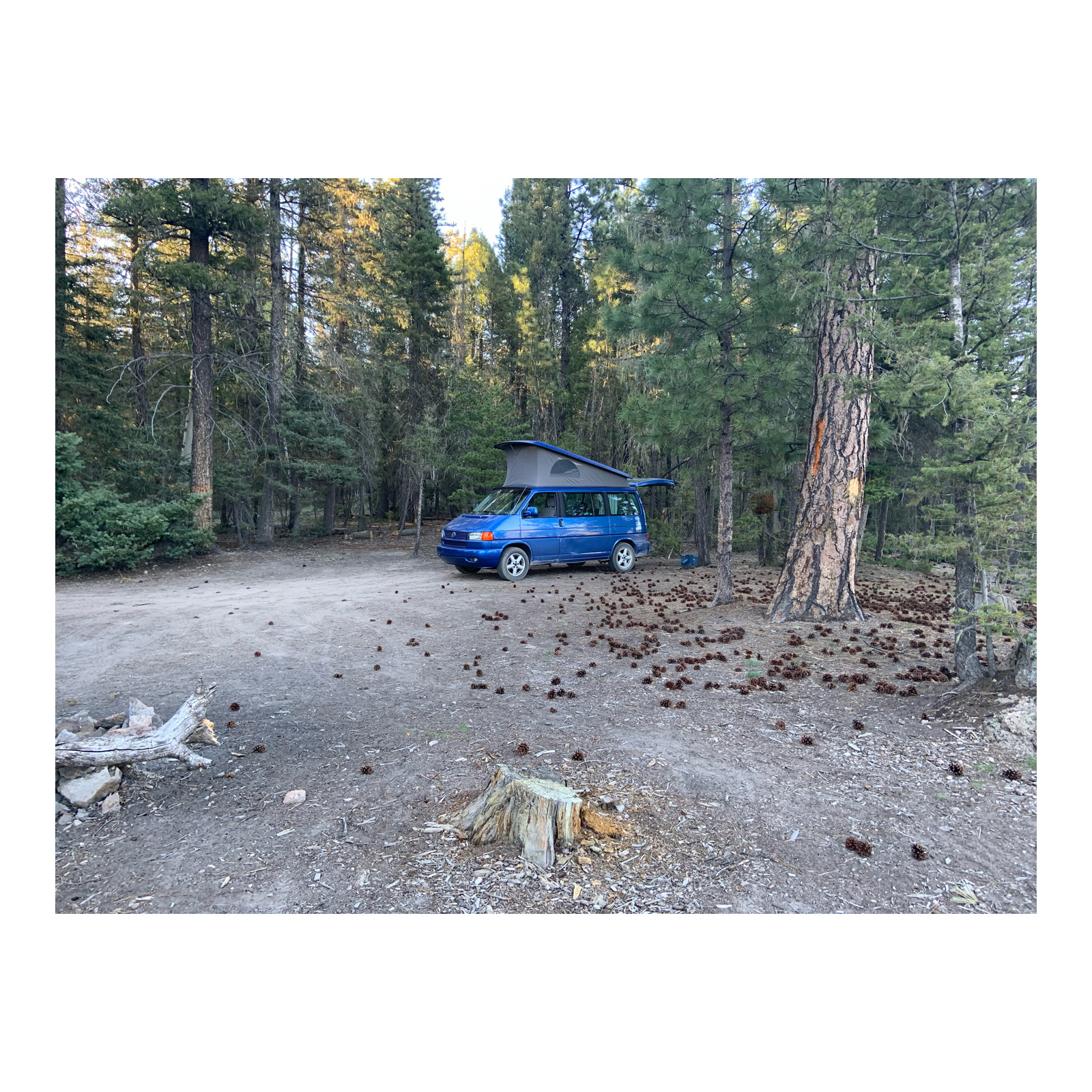 Then it is April. My boyfriend becomes obsessed with purchasing an escape vehicle. After one month in total lockdown, we drive to Colorado to buy a pop-top Eurovan in the parking lot of a Carl’s Junior. The interstate is deserted.