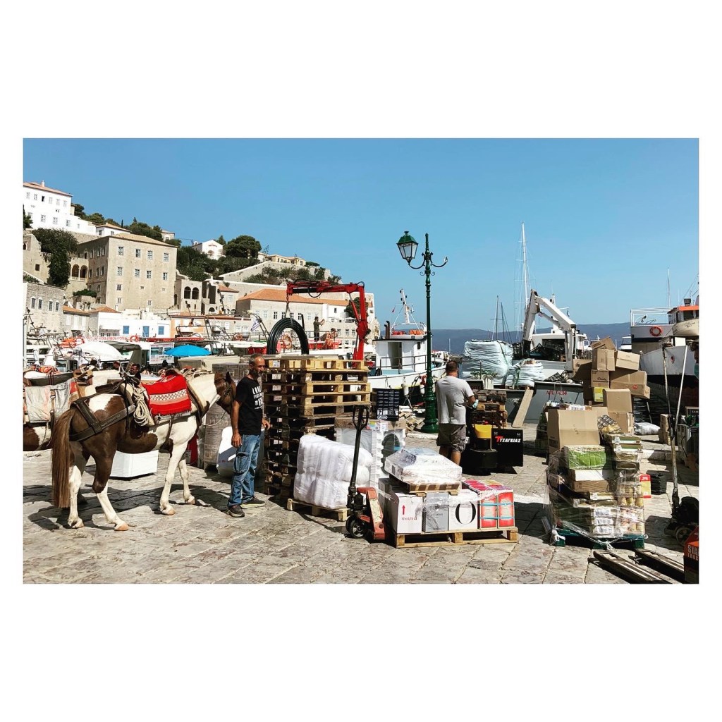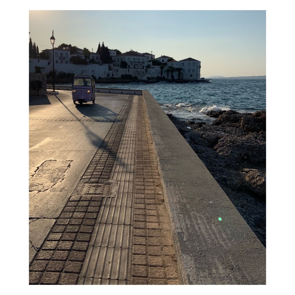 I can’t shake the idea that I’ve dropped into a parallel universe. Last night I sat in a water taxi as the waning moon peeked through the curtains of the taxi’s window, illuminating the water outside. So very Wes Anderson. Ten minutes later I was back from Spetsis, the island I’d returned to for the afternoon, back on the mainland and driving my little stick shift rental car through the Greek night. Our last weekend in Greece, though really hard to call it a weekend as it was one Sunday night sandwiched between Saturday and Monday night night shoots.